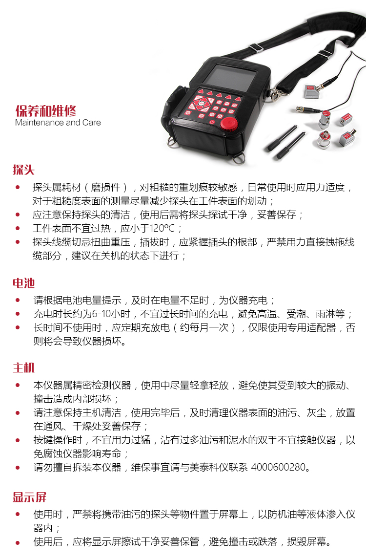 | 美泰標(biāo)準(zhǔn)超聲波探傷儀B系列內(nèi)置電池,電池類(lèi)型為:鋰電池,電壓:7.2V,電池容量:8800mAh。屬美泰超聲波探傷儀B系列產(chǎn)品的標(biāo)準(zhǔn)配置。使用中,切勿自行拆解電池組;僅限使用本公司提供的專(zhuān)用的電源適配器進(jìn)行充電,否則將會(huì)導(dǎo)致電池?fù)p壞,長(zhǎng)時(shí)間不使用時(shí),應(yīng)定期充放電(約每月一次),防止失效。 | |