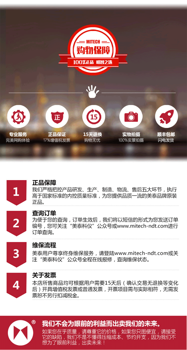 | 美泰系列便攜式超聲波測(cè)厚儀附有專(zhuān)用的隨機(jī)裝箱資料。包括產(chǎn)品合格證、保修卡、產(chǎn)品說(shuō)明書(shū)、裝箱清單。隨機(jī)資料采用專(zhuān)用的銅版紙印制,說(shuō)明書(shū)圖文設(shè)計(jì),美觀、易懂、便于長(zhǎng)久保存。注:美泰品牌系列產(chǎn)品的隨機(jī)資料均可登陸m.marker1realty.com下載電子版。 | |