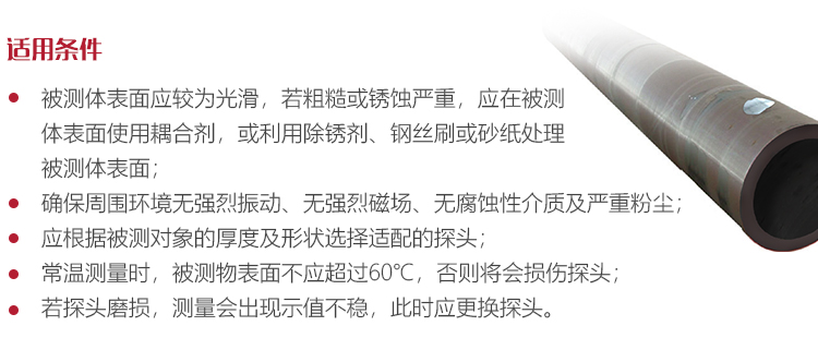 若被測(cè)體表面有大量耦合劑時(shí),當(dāng)探頭離開(kāi)被測(cè)體表面時(shí),耦合劑會(huì)引起誤測(cè)。因此測(cè)量結(jié)束時(shí),應(yīng)迅速將探頭移開(kāi)被測(cè)體表面。