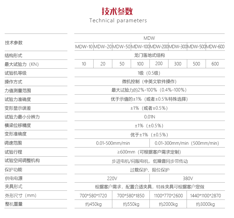 MDW-10、MDW-20、MDW-50、MDW-100、MDW-200、MDW-300