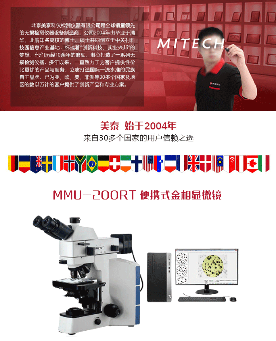 產(chǎn)品概述美泰正置金相顯微鏡MMU-200RT是基于光學(xué)成像原理,利用透鏡將微小物體實(shí)現(xiàn)放大成像,可對透明物體和不透明物體進(jìn)行顯微觀察。可搭配CCD工業(yè)相機(jī)和數(shù)碼相機(jī)使用,并與計算機(jī)、監(jiān)視器、顯示器連接,通過金相分析軟件對圖譜進(jìn)行全方位的分析。其造型美觀,操作方便,圖像清晰,是生物學(xué)、金屬學(xué)、礦物學(xué)、精密工程學(xué)、電子學(xué)等研究的理想儀器。被廣泛應(yīng)用于教學(xué)科研、金相分析、工業(yè)檢測等領(lǐng)域。