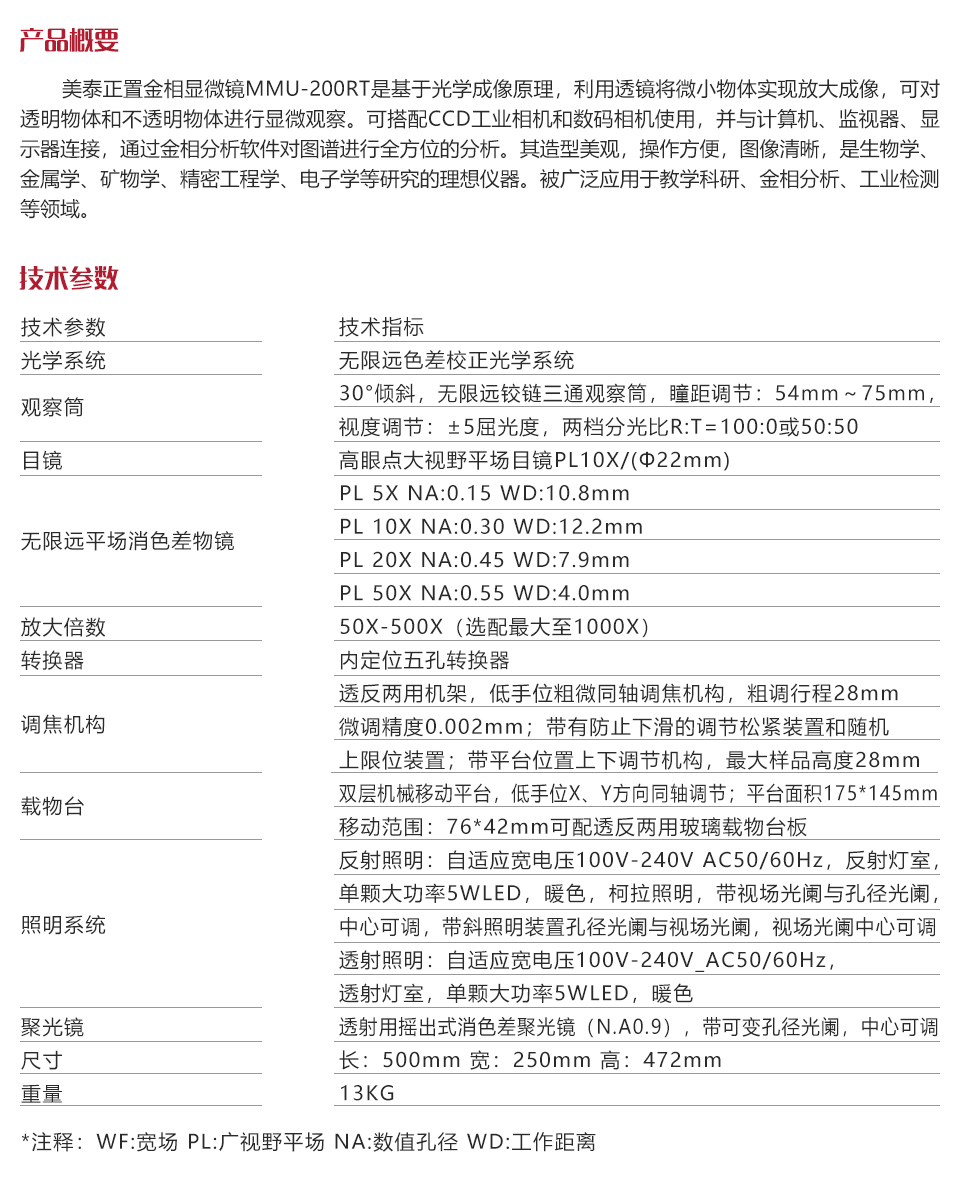 | 無限遠(yuǎn)平場消色差物鏡 | PL 5X NA:0.15 WD:10.8mm/PL 10X NA:0.30 WD:12.2mm/PL 20X NA:0.45 WD:7.9mm/PL 50X NA:0.55 W |