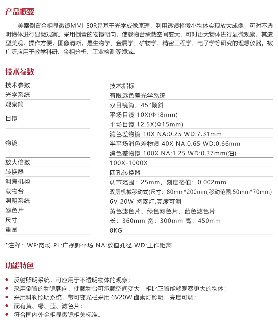 儀器特點(diǎn)反射照明系統(tǒng),可應(yīng)用于不透明物體的觀察;
