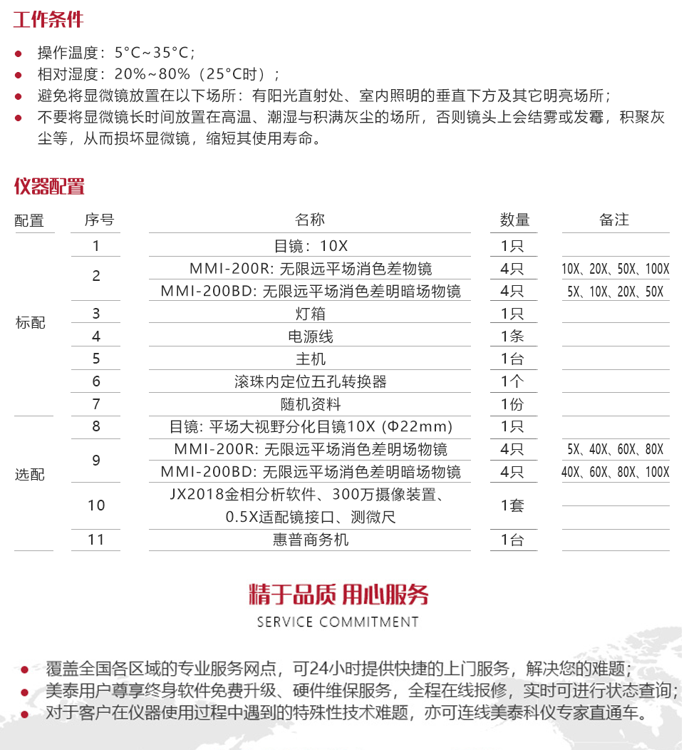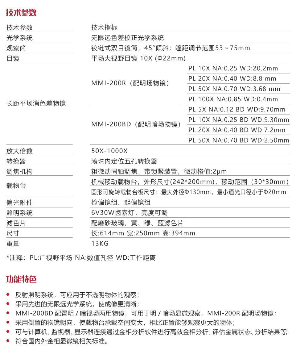 MMI-200BD配置明/暗視場兩用物鏡,可用于明/暗場顯微觀察,MMI-200R配明場物鏡;