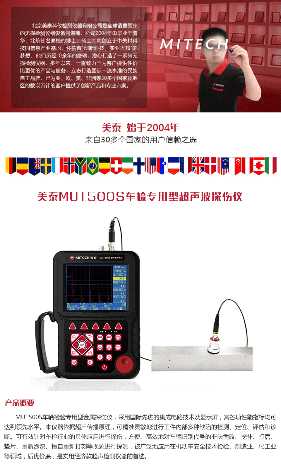 產(chǎn)品概述MUT500S車輛檢驗專用型金屬探傷儀,采用國際先進的集成電路技術(shù)及顯示屏,其各項性能指標均可達到領(lǐng)先水平。本儀器依據(jù)超聲傳播原理,可精準靈敏地進行工件內(nèi)部多種缺陷的檢測、定位、評估和診斷??捎行п槍嚈z行業(yè)的具體應用進行探傷,方便、高效地對車輛識別代號的非法鑿改、挖補、打磨、墊片、重新涂漆、擅自重新打刻等現(xiàn)象進行探測,被廣泛地應用在機動車安全技術(shù)檢驗、制造業(yè)、化工業(yè)等領(lǐng)域,質(zhì)優(yōu)價廉,是實用經(jīng)濟款超聲檢測儀器的首選。