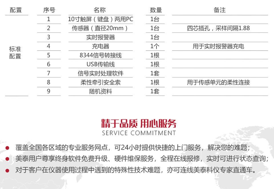 | 專用數(shù)據(jù)采集測量主機 | 10寸觸屏(鍵盤)兩用主機,集成報警盒與分析軟件系統(tǒng)一體化設(shè)計,設(shè)有數(shù)據(jù)導出口,可直接顯示、保存、讀取、分析、打印報告,配有專用采集分析軟件,可實現(xiàn)缺陷精準分類,界面設(shè)有調(diào)節(jié)按鈕,數(shù)據(jù)充電口,4個航空 |