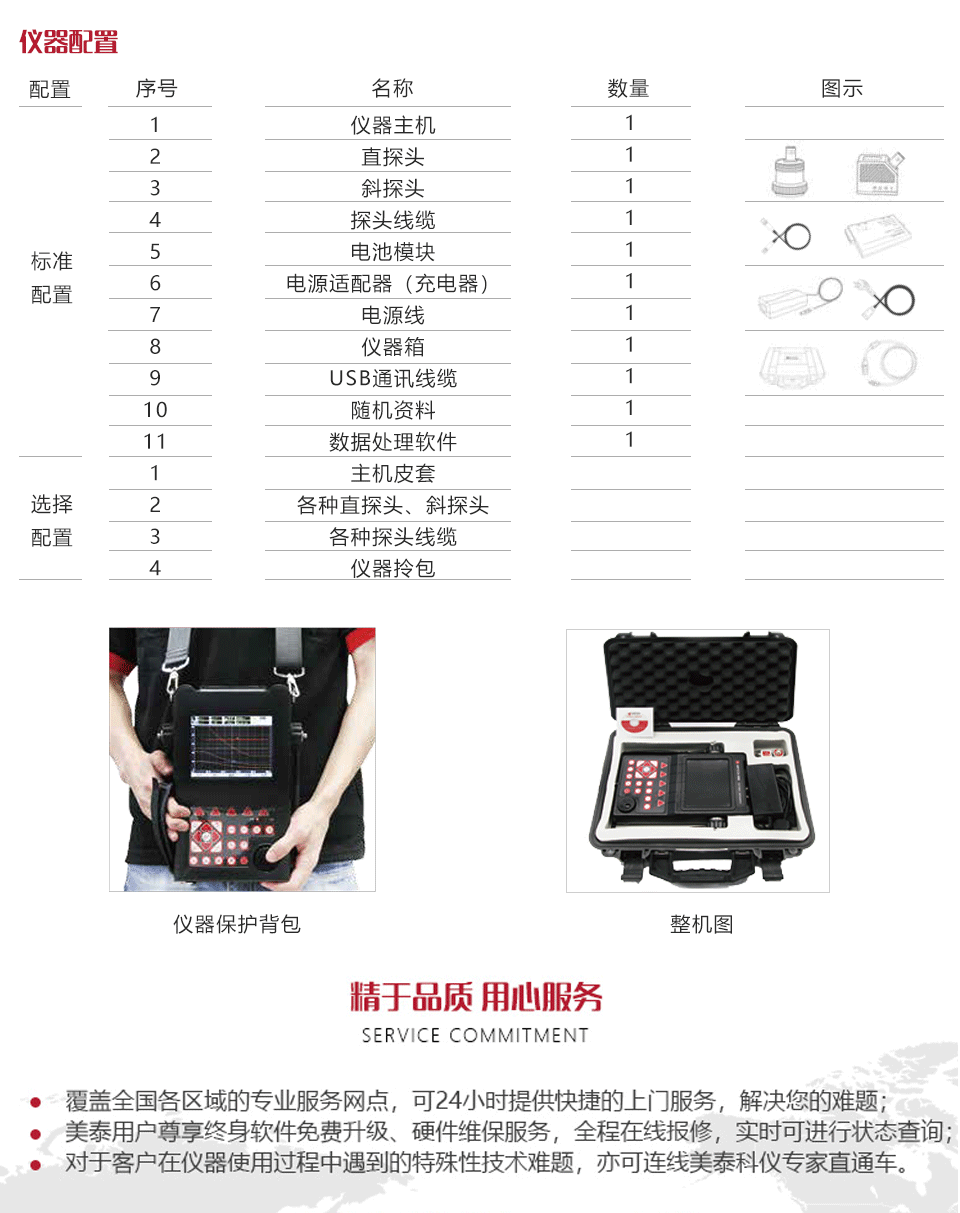 | 美泰超聲波探傷儀附有專用的隨機(jī)裝箱資料。包括產(chǎn)品合格證、保修卡、產(chǎn)品說明書、裝箱清單。隨機(jī)資料采用專用的銅版紙印制,說明書圖文設(shè)計(jì),美觀、易懂、便于長久保存。注:美泰品牌系列產(chǎn)品的隨機(jī)資料均可登陸m.marker1realty.com下載電子版。 | |