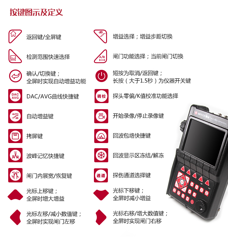 | 定位 | 實(shí)時(shí)顯示缺陷水平、深度(垂直)、聲程位置 |