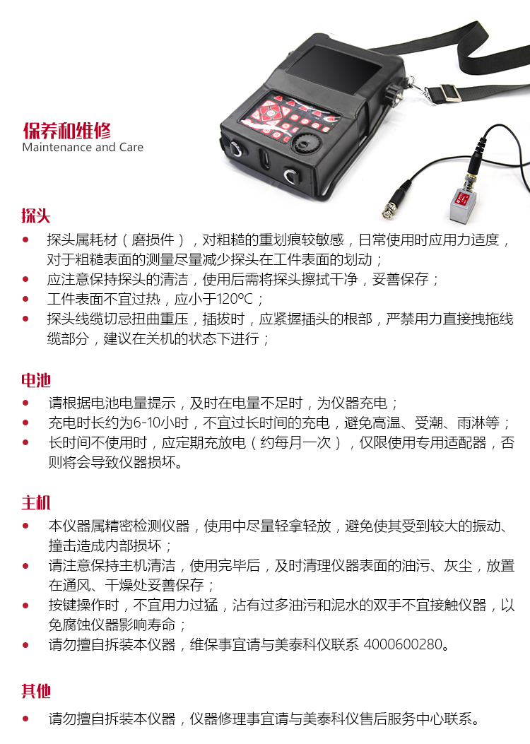 | 美泰超聲波探傷儀附有專用的隨機(jī)裝箱資料。包括產(chǎn)品合格證、保修卡、產(chǎn)品說(shuō)明書、裝箱清單。隨機(jī)資料采用專用的銅版紙印制,說(shuō)明書圖文設(shè)計(jì),美觀、易懂、便于長(zhǎng)久保存。注:美泰品牌系列產(chǎn)品的隨機(jī)資料均可登陸m.marker1realty.com下載電子版。 | |