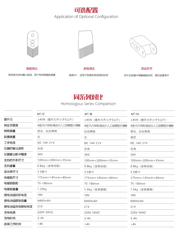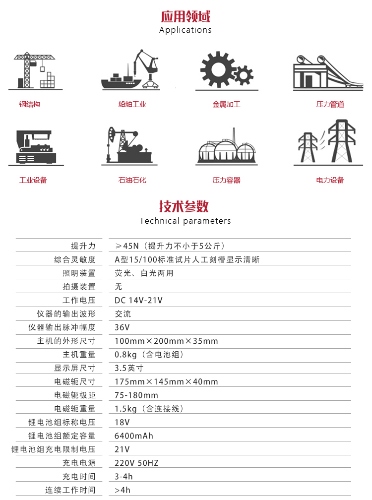 | 電磁軛尺寸 | 175mm×145mm×40mm |