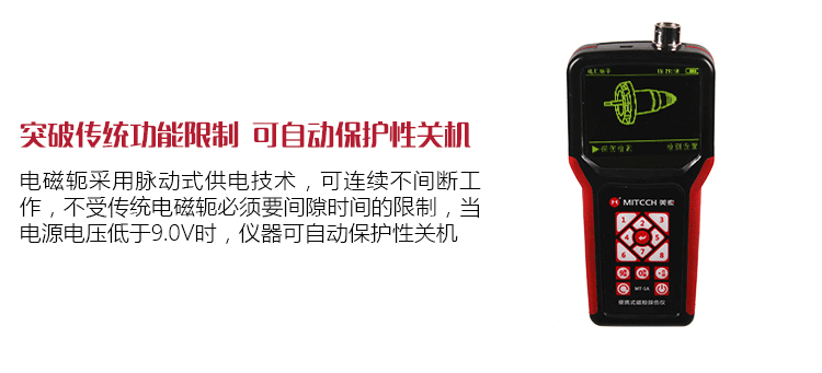?電磁軛采用脈動式供電技術(shù),可連續(xù)不間斷工作,不受傳統(tǒng)電磁軛必須要間隙時間的限制,當(dāng)電源電壓低于9.0V時,儀器可自動保護(hù)性關(guān)機(jī)。