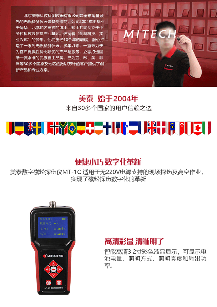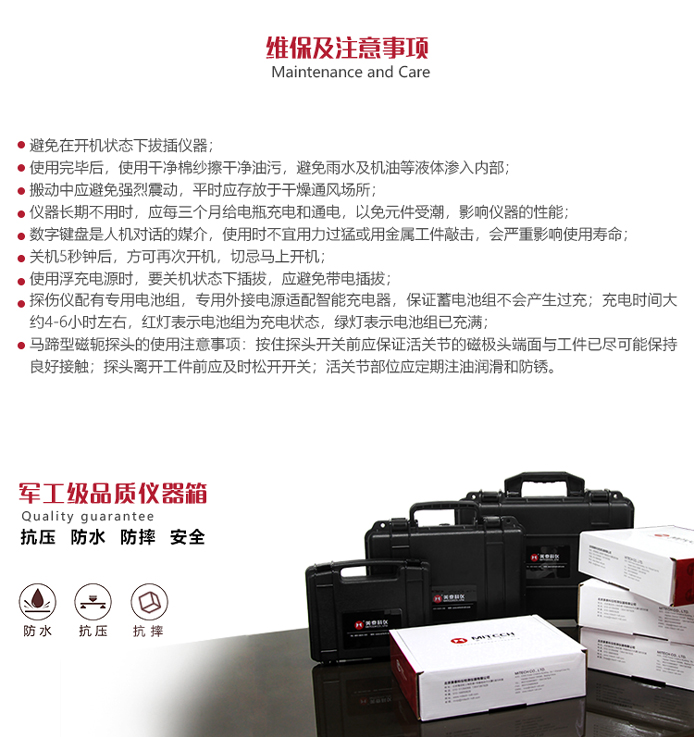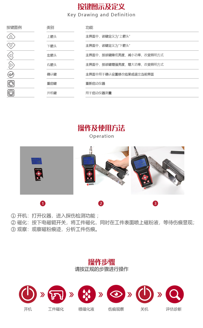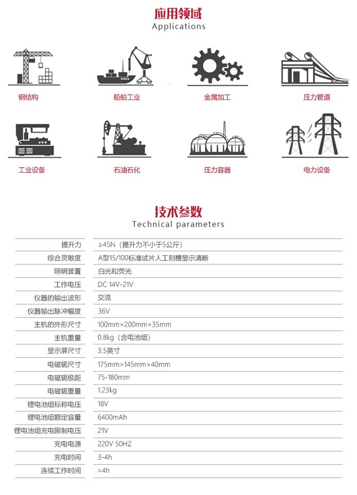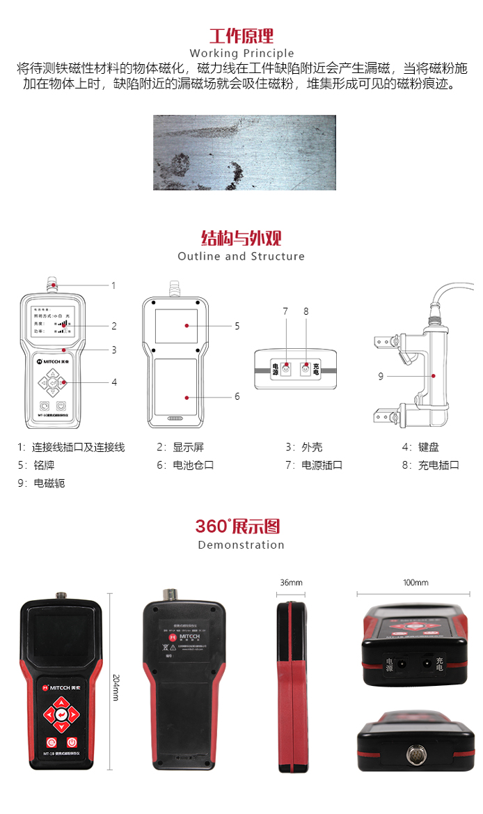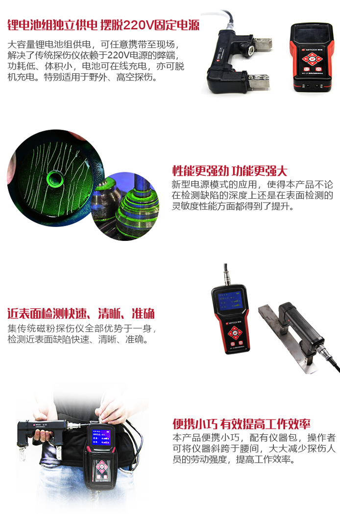 ?新型電源模式的應(yīng)用,使本產(chǎn)品不論在檢測缺陷的深度還是在檢測表面的靈敏度方面都得到了提升;