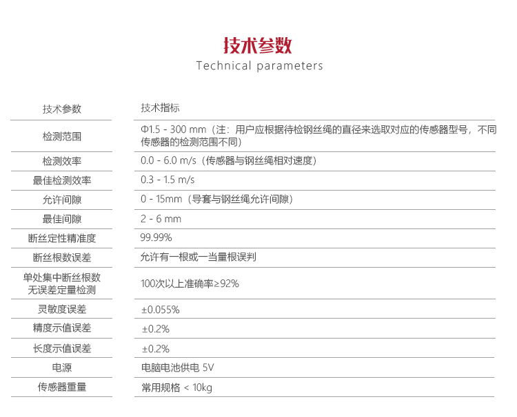 檢測范圍 Φ1.5 - 36 mm(鋼絲繩直徑)
