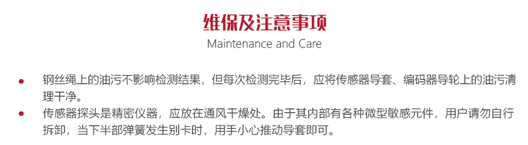 鋼絲繩上的油污不影響檢測結(jié)果,但每次檢測完畢后,應(yīng)將傳感器導(dǎo)套、編碼器導(dǎo)輪上的油污清理干凈。