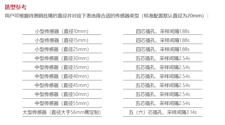 Φ1.5 - 300mm(鋼絲繩直徑不同,所選傳感器范圍也會不同)