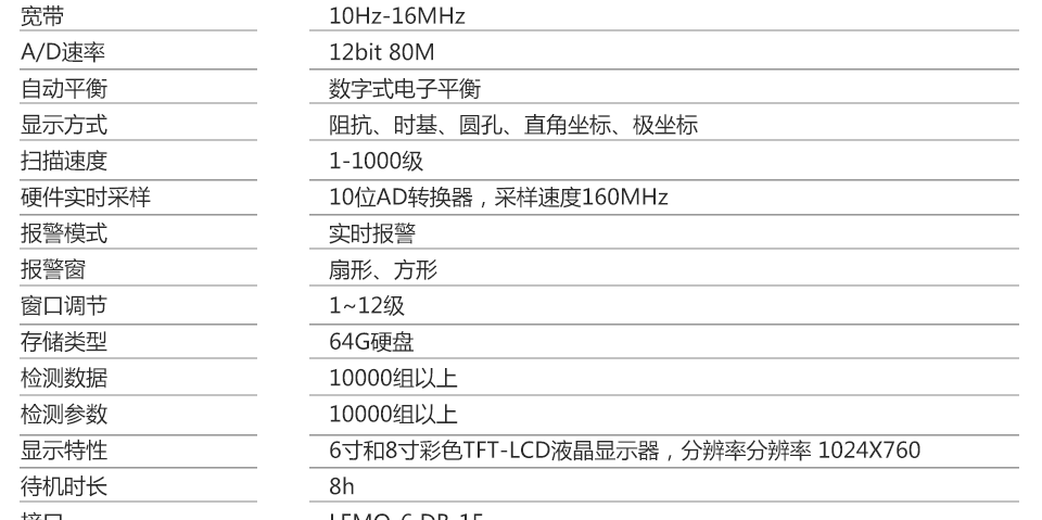 | 裂紋檢測(cè)精度 | 長(zhǎng)×寬×深 3mm×0.1mm×0.1mm(使用平面探頭檢測(cè)鋼試塊) |