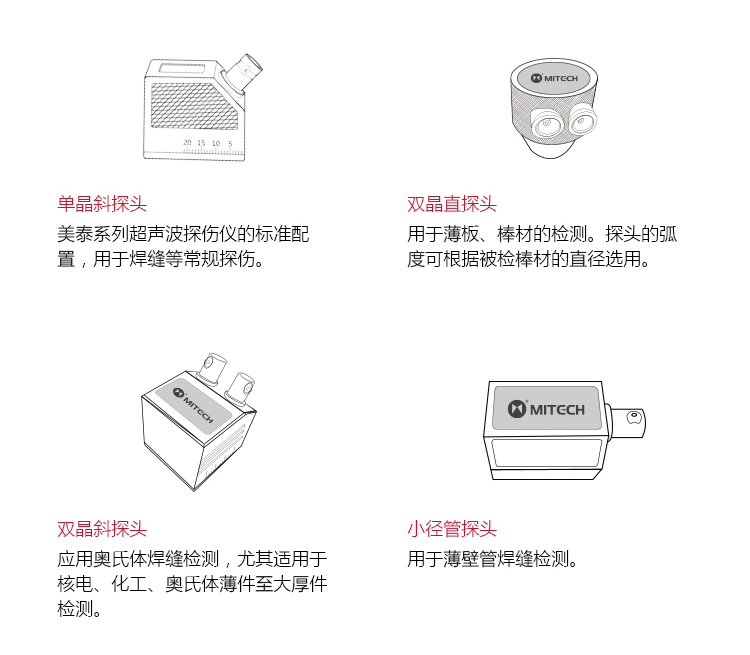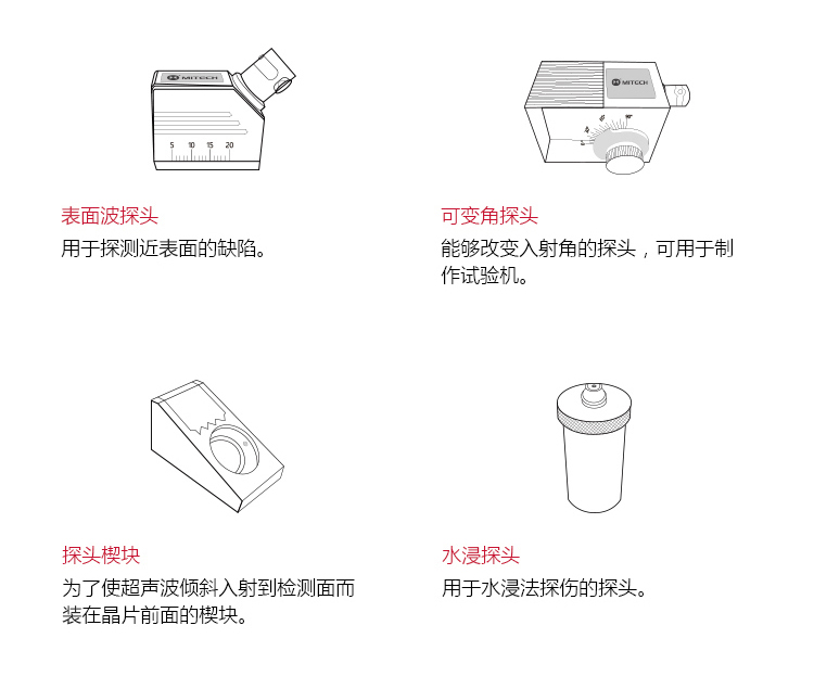 | 探頭類型 | 直探頭、斜探頭、雙晶探頭、穿透探頭 |
