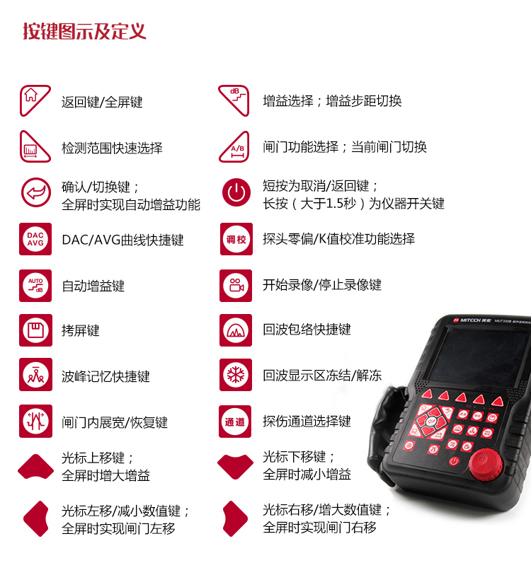 | 定位 | 實時顯示缺陷水平、深度(垂直)、聲程位置 |