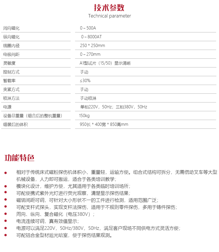 l 磁軛間距可調(diào),可針對(duì)大小形狀不一的工件進(jìn)行檢測(cè),適用范圍廣泛;