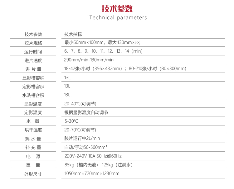 | 膠片規(guī)格 | 最小80mm×100mm,最大430mm×∞ |