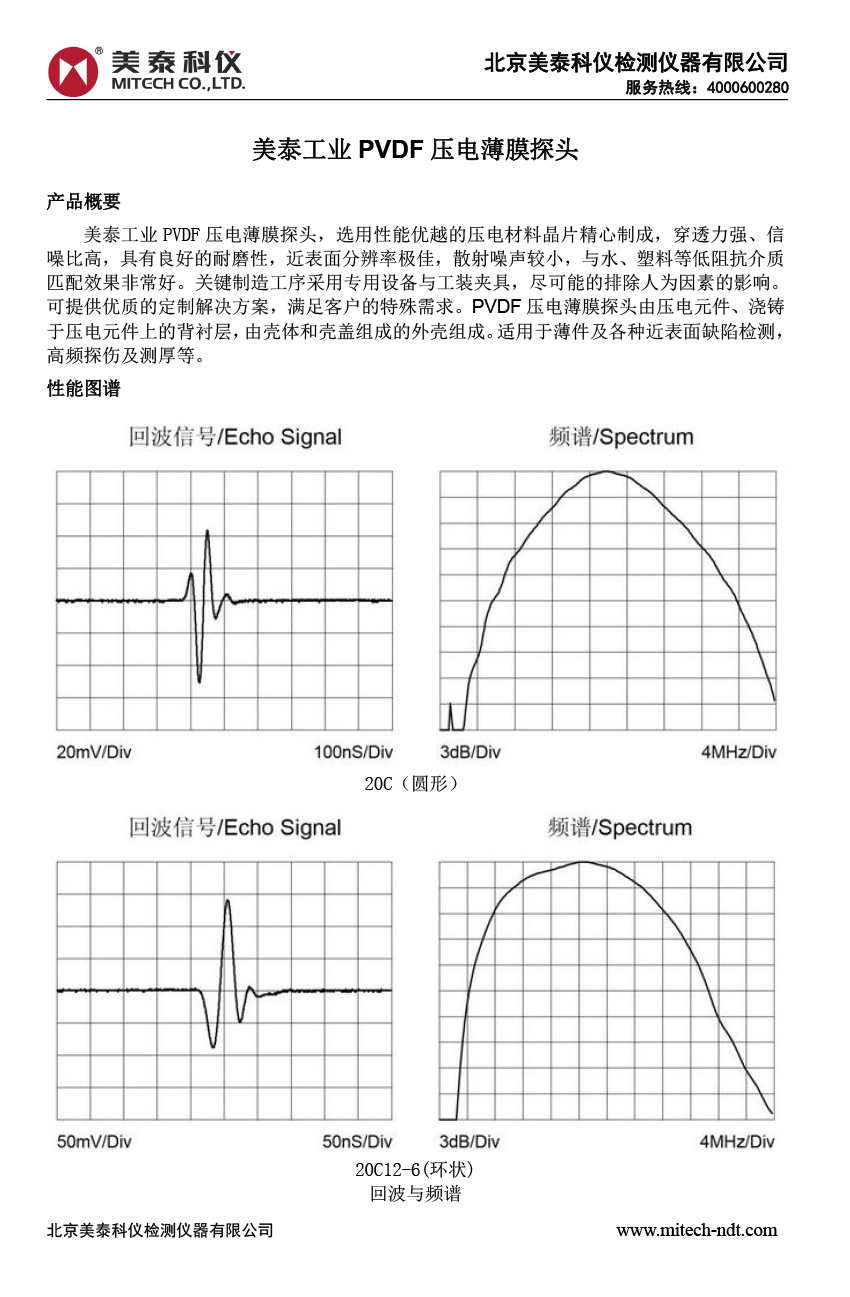 美泰工業(yè)PVDF壓電薄膜探頭,選用性能優(yōu)越的壓電材料晶片精心制成,穿透力強(qiáng)、信噪比高,具有良好的耐磨性,近表面分辨率極佳,散射噪聲較小,與水、塑料等低阻抗介質(zhì)匹配效果非常好。關(guān)鍵制造工序采用專用設(shè)備與工裝夾具,盡可能的排除人為因素的影響??商峁﹥?yōu)質(zhì)的定制解決方案,滿足客戶的特殊需求。PVDF壓電薄膜探頭由壓電元件、澆鑄于壓電元件上的背襯層,由殼體和殼蓋組成的外殼組成。適用于薄件及各種近表面缺陷檢測,高頻探傷及測厚等。